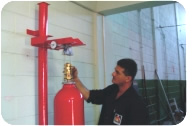 pela tubulação que segue aos cilindros abafa o oxigênio extinguindo totalmente o fogo do local onde o